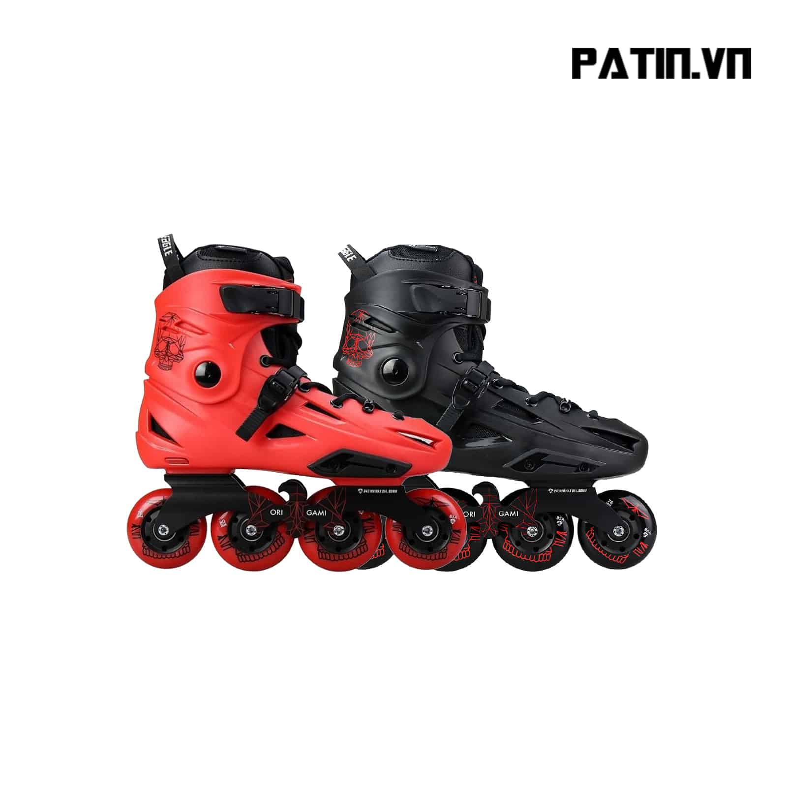 Flying Eagle F3S Origami sở hữu vẻ đẹp mạnh mẽ đầy lôi cuốn với gam màu đỏ và đen sắc nét, hình chim đại bàng tung cánh đầy khỏe khoắn được thể hiện rất tinh tế trên chiếc frame (càng) đặc trưng của hãng. Bên cạnh đó, chất lượng của F3S được hội tụ bởi rất nhiều chi tiết chỉ có ở những sản phẩm cao cấp. Khóa giày chất liệu nhựa độ bền cao kết hợp chốt kim loại bán tự động, ốc cổ giày có thể tháo rời thay thế dễ dàng, bánh xe cao su đàn hồi bám đường tốt, boot trong dày dặn, êm ái và thoáng khí. Mọi chi tiết trên mẫu giày trượt F3S Origami được thiết kế và sản xuất rất trau chuốt và đẹp mắt. Đây là mẫu giày trượt bạn sẽ bị thu hút ngay từ ánh nhìn đầu tiên.
