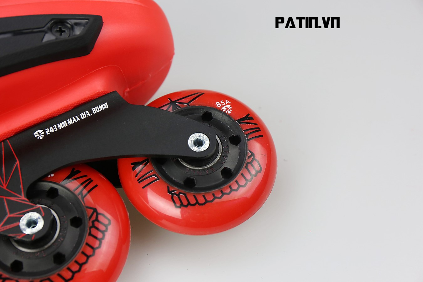 Bánh xe: RX-Wings Wheel độ cứng 85A, bánh xe chất liệu cao su có đàn hồi cao, bám đường ổn định. Hiếm khi bị vỡ khi trượt như các dòng bánh xe thông thường.