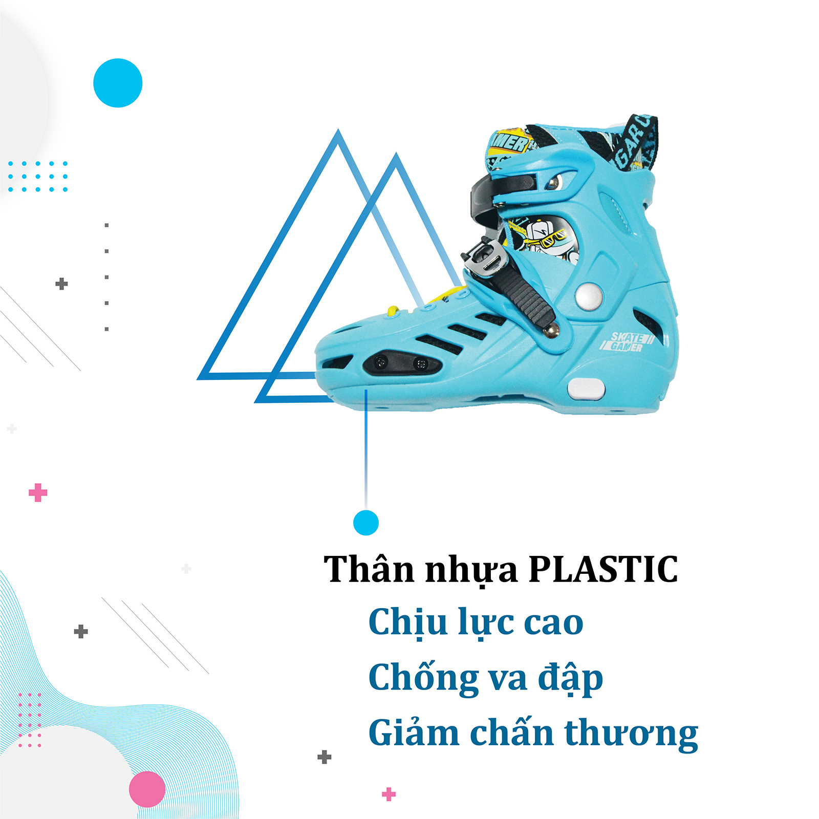 – Form giày: Phần thân giày được làm bằng nhựa Plastic chắc chắn, lớp vỏ rất dày chịu lực va đập cao. Hạn chế tối chấn thương, an toàn, bảo vệ mắt cá chân của bé.
