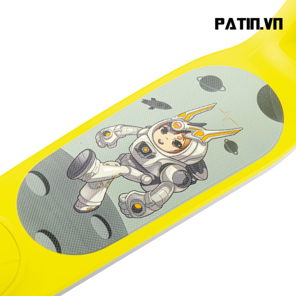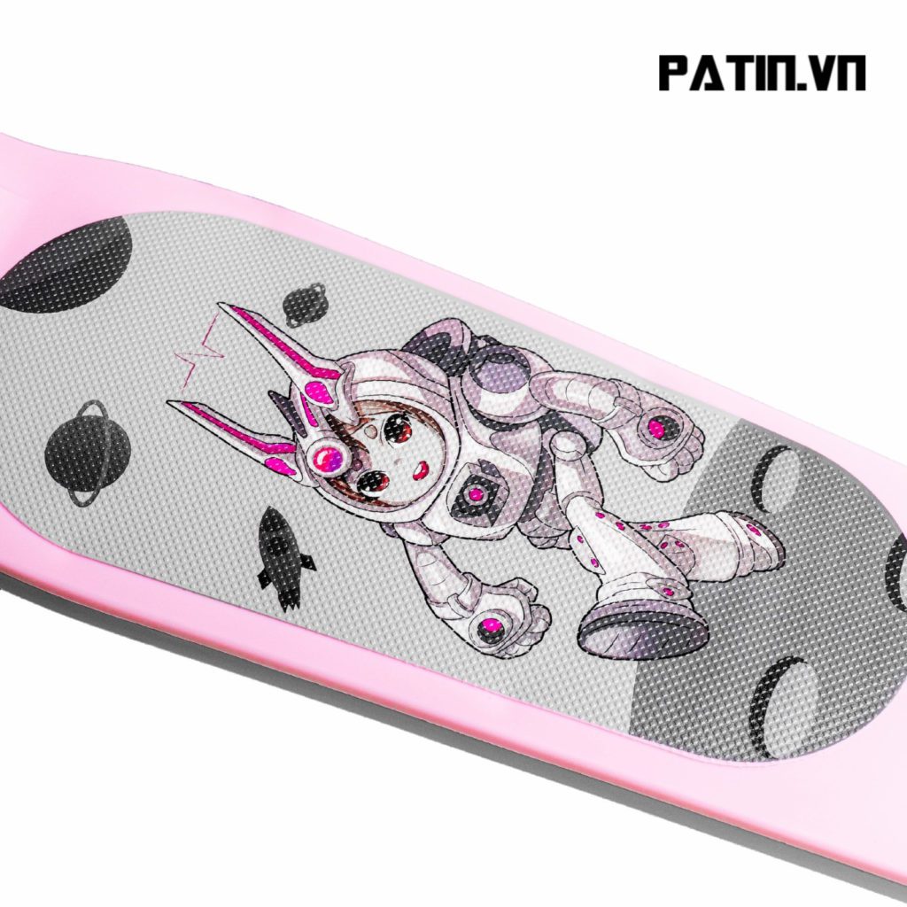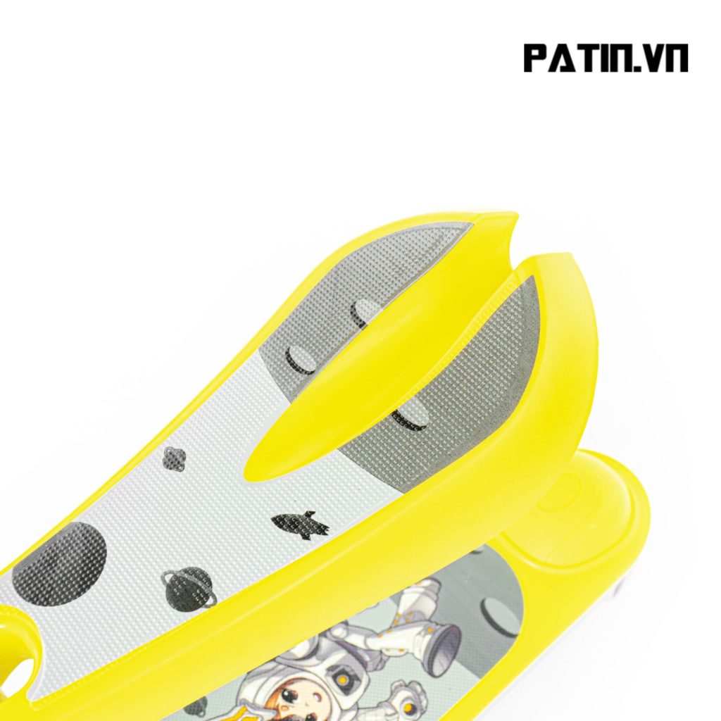 – Bề mặt ván đặt chân: Thiết kế vừa vặn với chân của các bé, có in họa tiết ngộ nghĩnh phù hợp với lứa tuổi của các bé. Bề mặt ván có lớp nhám tạo độ ma sát đảm bảo an toàn khi trượt trên mọi địa hình, đặc biệt khi chơi ở địa hình dốc.