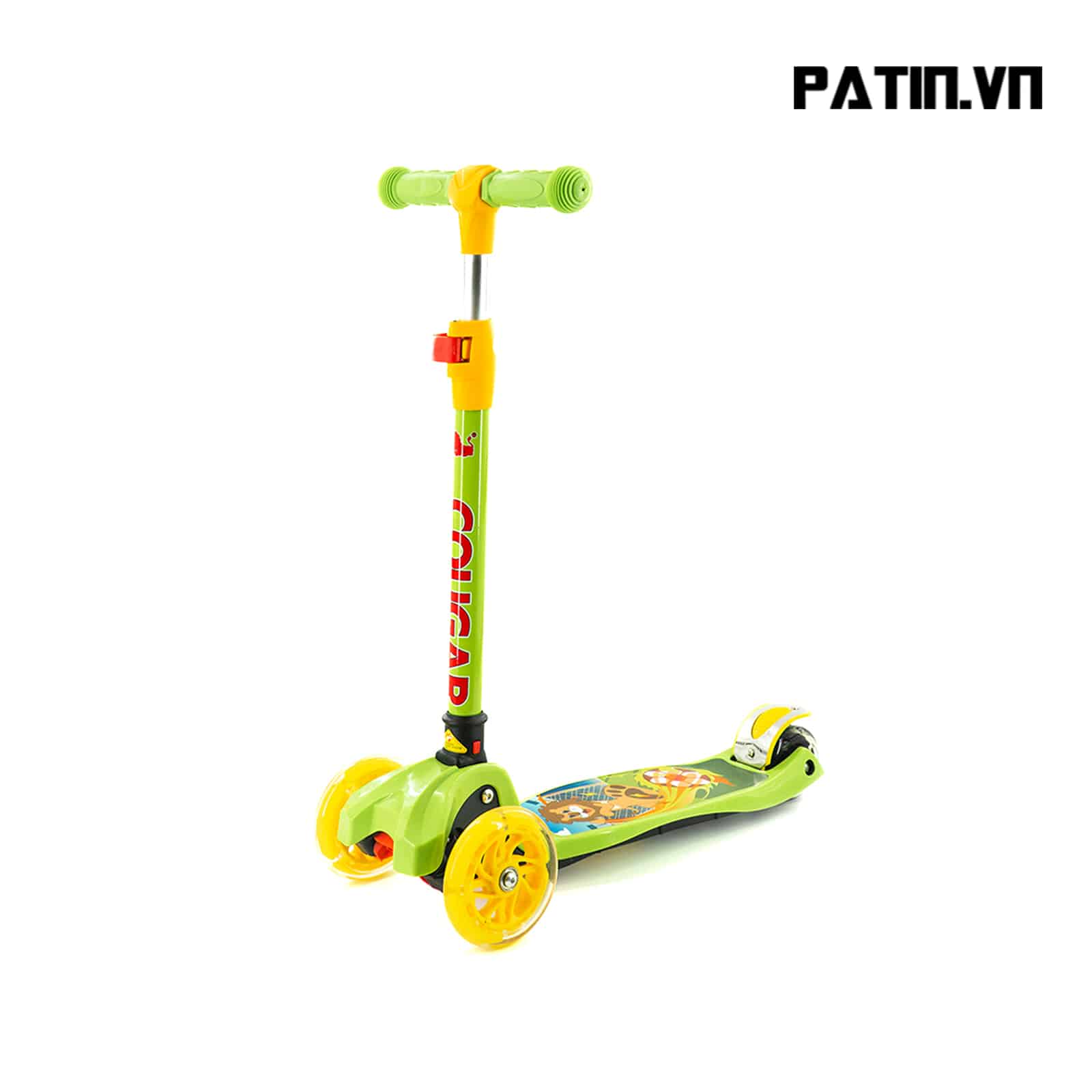 Xe Scooter Cougar MHBC 05 có tay lái chắc chắn, dễ dàng điều chỉnh chiều cao. Bánh kép với phanh an toàn cho bé . Hình ảnh thân xe ngộ nghĩnh, bé nào cũng thích.